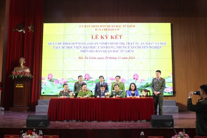 Dưới sự chứng kiến của lãnh đạo CATP, UBND và CAQ các nhà trường và CAQ Bắc Từ Liêm đã ký kết quy chế phối hợp