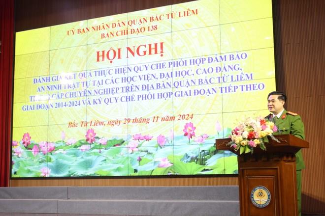 ANTD.VN - Ngày 29-11, Công an quận Bắc Từ Liêm, Hà Nội đã tổ chức hội nghị đánh giá kết quả thực hiện quy chế phối hợp đảm bảo an ninh trật tự tại các Học viện, Đại học, Cao đẳng, Trung cấp chuyên nghiệp trên địa bàn giai đoạn 2014-2024.
