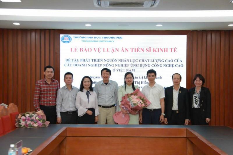 PGS.TS. Lê Ba Phong (Thứ 3 từ phải sang) tham gia Hội đồng đánh giá Luận án Tiến sĩ cấp trường tại trường Đại học Thương mại đề tài "Phát triển nguồn nhân lực chất lượng cao của các doanh nghiệp nông nghiệp ứng dụng công nghệ cao ở Việt Nam"