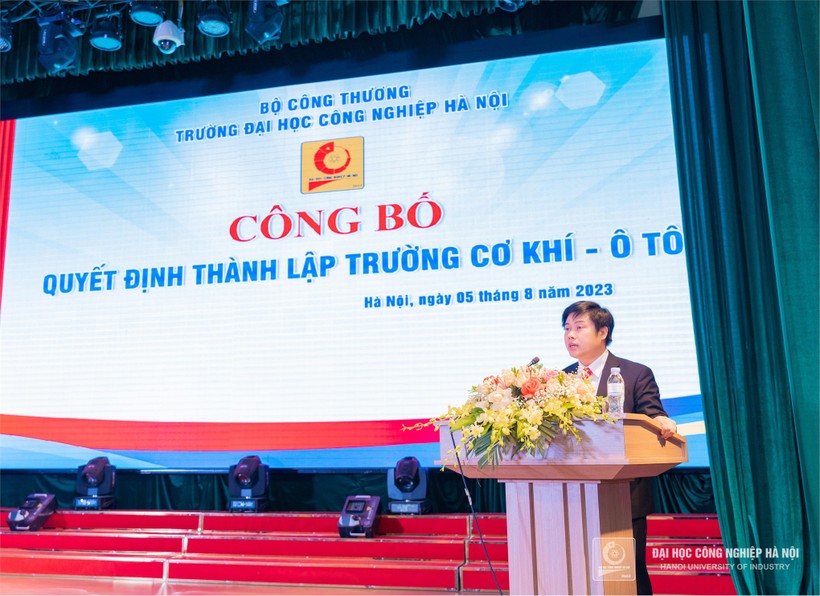 Tại đây, PGS.TS Lê Hồng Quân - Bí thư Đảng ủy, Chủ tịch Hội đồng Trường và TS. Kiều Xuân Thực – Hiệu trưởng Trường ĐH Công nghiệp Hà Nội đã trao quyết định bổ nhiệm Hiệu trưởng Trường Cơ khí – Ô tô cho PGS.TS Hoàng Tiến Dũng; hai Phó Hiệu trưởng là TS. Nguyễn Anh Ngọc và TS. Nguyễn Anh Tú.
