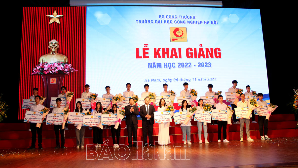 Nhân dịp này, Trường ĐH Công nghiệp Hà Nội đã trao tặng học bổng toàn khóa cho 10 thủ khoa, mỗi sinh viên 90 triệu đồng; 17 á khoa các tổ hợp xét tuyển đầu vào của trường và 6 sinh viên có kết qủa cao nhất đối với các phương thức xét tuyển, mỗi người 20 triệu đồng.