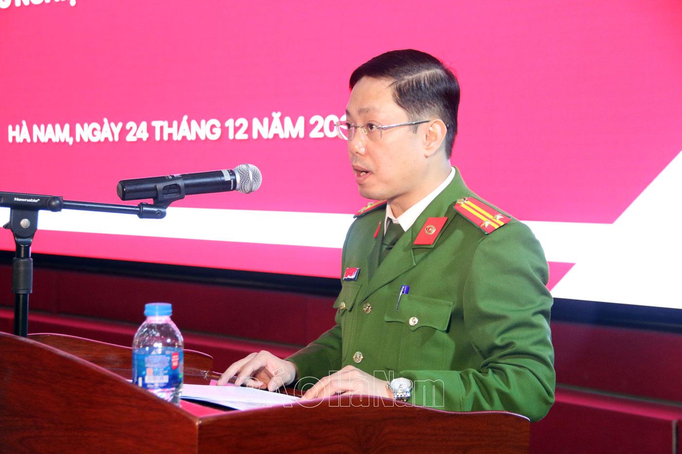 Trung tá Trương Vũ Minh, Trưởng Phòng Cảnh sát PCCC và CNCH, Công an tỉnh phát biểu tại chương trình.
