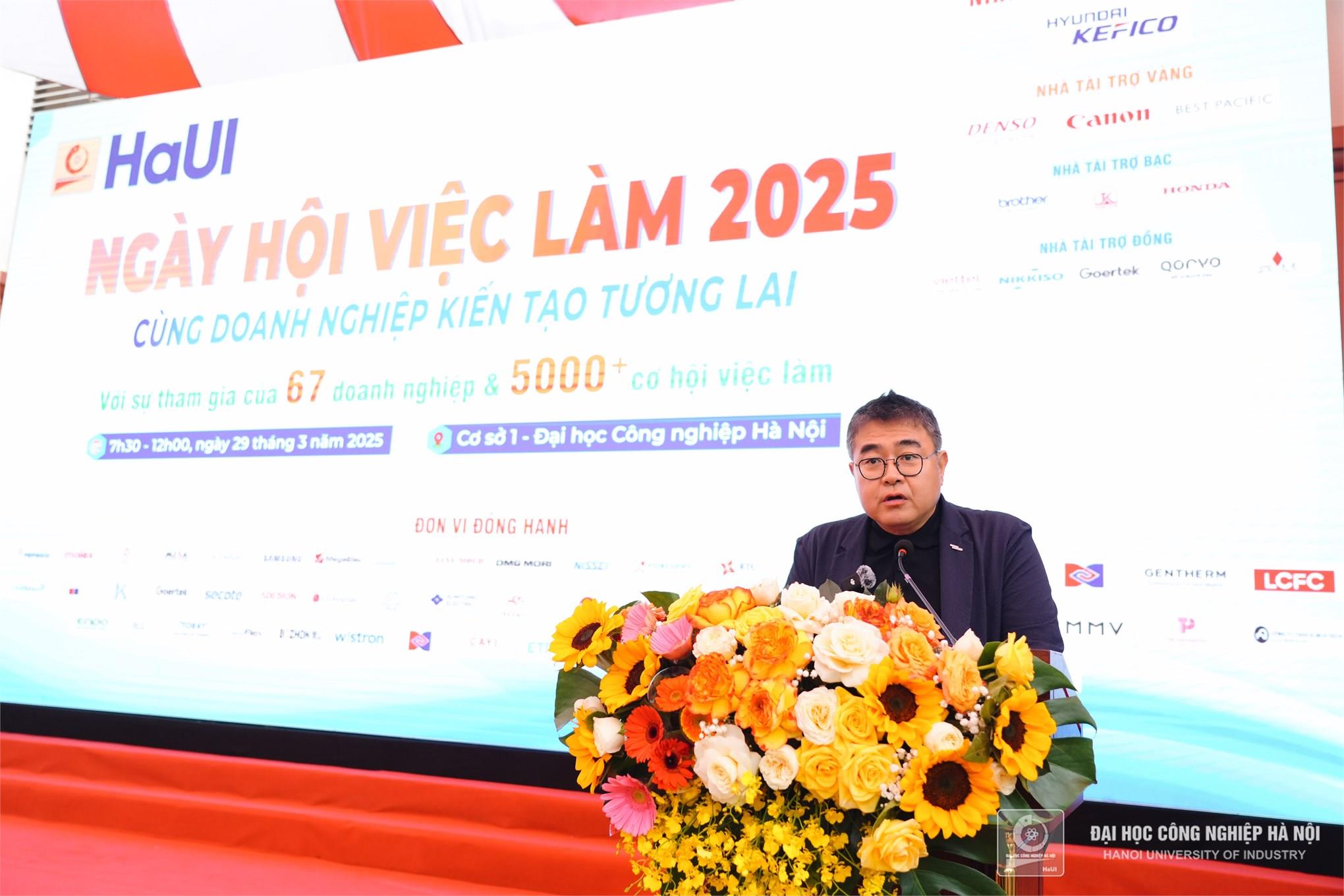 Phát biểu khai mạc tại Ngày hội việc làm Trường Đại học Công nghiệp Hà Nội năm 2025, PGS.TS Phạm Văn Đông - Phó Hiệu trưởng nhà trường bày tỏ mong muốn hợp tác cùng các doanh nghiệp với các nội dung: Mở rộng hợp tác quốc tế trong đào tạo, thực tập sản xuất với các cơ sở giáo dục và các doanh nghiệp trong và ngoài nước; Thu hút sinh viên các nước tới học tập, nghiên cứu tại HaUI, sau tốt nghiệp sẽ làm việc cho doanh nghiệp, doanh nghiệp sẽ hỗ trợ kinh phí khi học tập tại HaUI; Hợp tác đầu tư nguồn lực đào tạo nhân lực chất lượng cao như công nghệ, máy, thiết bị,… phù hợp với công nghệ sản xuất của doanh nghiệp; HaUI kêu gọi các đơn vị, doanh nghiệp, hợp tác, đầu tư cho đào tạo tại HaUI, cùng nhau hướng tới tương lai, đào tạo nguồn nhân lực chất lượng cao đáp ứng yêu cầu của doanh nghiệp.