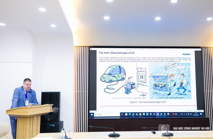 PGS. Karpukhin Kirill - Trung tâm Nghiên cứu Khoa học Nhà nước Nga NAMI, chia sẻ về “Range Extenders for electric vehicles. The experience of development and application in the Russian Federation” - kinh nghiệm triển khai bộ mở rộng phạm vi cho xe điện tại Liên bang Nga, đặc biệt là tại các vùng có khí hậu khắc nghiệt. Ông cũng giới thiệu các giải pháp như pin mặt trời, xe điện sử dụng hydro, mở ra triển vọng mới cho giao thông xanh ở nhiều quốc gia.
