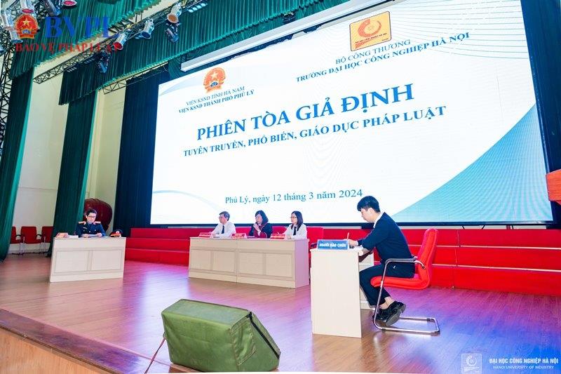 Chiều 12/3, VKSND TP Phủ Lý (Hà Nam) tổ chức phiên tòa giả định vụ án "Trộm cắp tài sản” tuyên truyền, phổ biến giáo dục pháp luật cho gần 300 sinh viên Trường Đại học Công nghiệp Hà Nội (cơ sở tại Hà Nam). Đây là phiên tòa giả định thứ 6 VKSND TP Phủ Lý tổ chức trong trường học trên địa bàn Thành phố để tuyên truyền pháp luật và đã nhận được hiệu ứng tích cực từ các thầy cô giáo và học sinh, sinh viên.