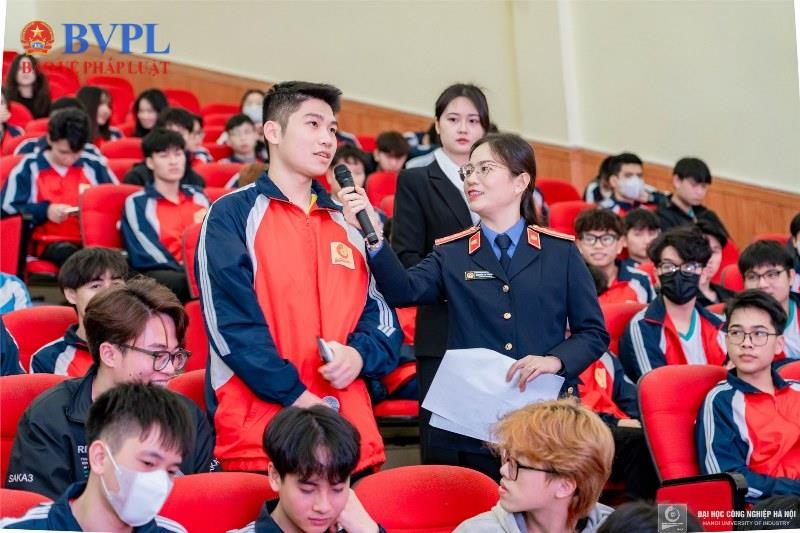 Sau phiên tòa giả định, đại diện VKSND TP Phủ Lý và sinh viên đã có nhiều nội dung hỏi đáp, giao lưu, trả lời câu hỏi về những tình huống vi phạm pháp luật thường xảy ra, giúp sinh viên hình thành kỹ năng cần thiết trong nhận biết những hành vi vi phạm pháp luật, từ đó nâng cao nhận thức trong việc tuân thủ các quy định của pháp luật.