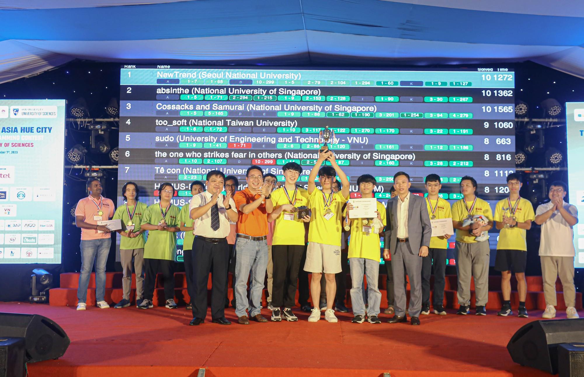 Ban tổ chức ICPC Asia Hue City 2023 trao cúp vô địch cho nhóm sinh viên ĐH Quốc gia Seoul (Hàn Quốc).