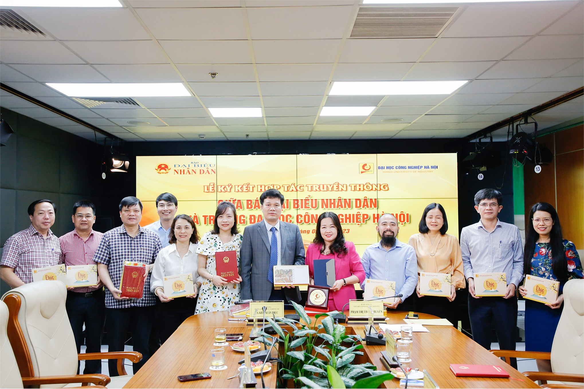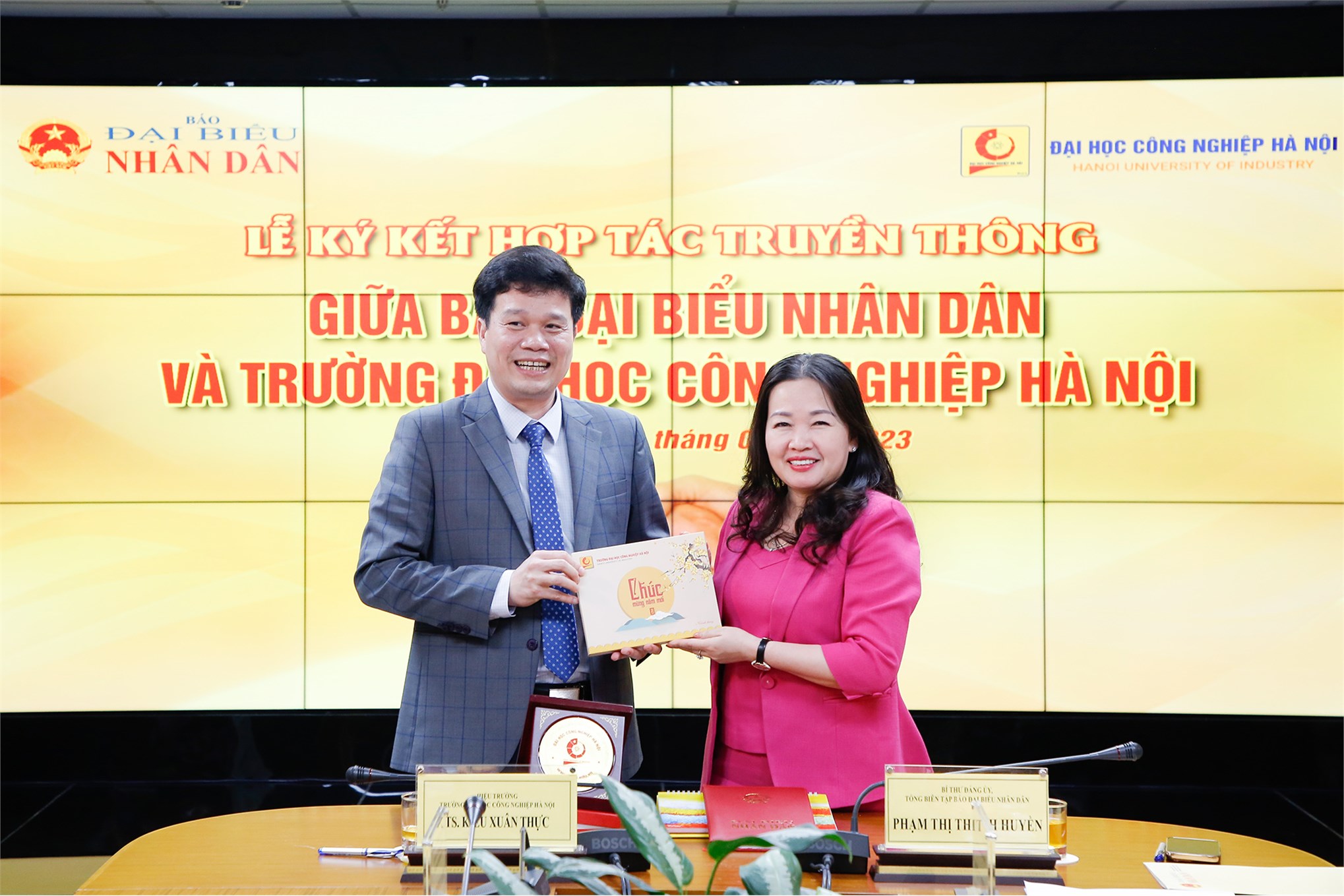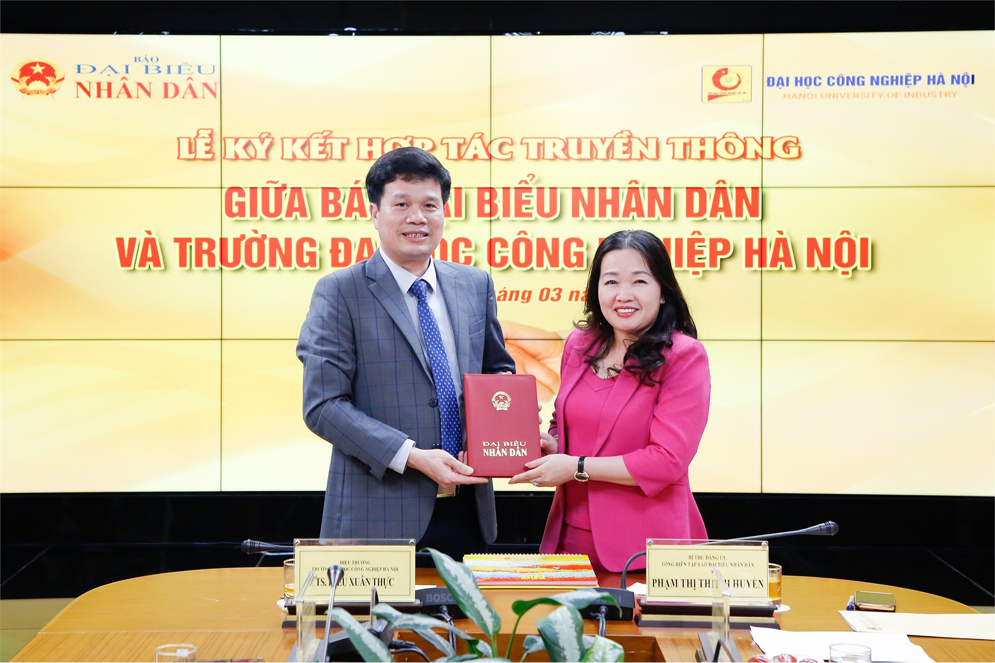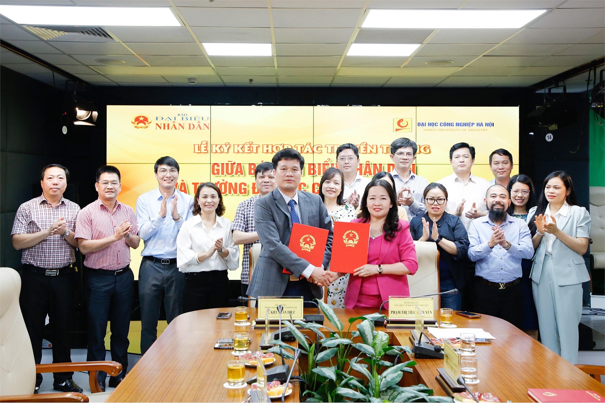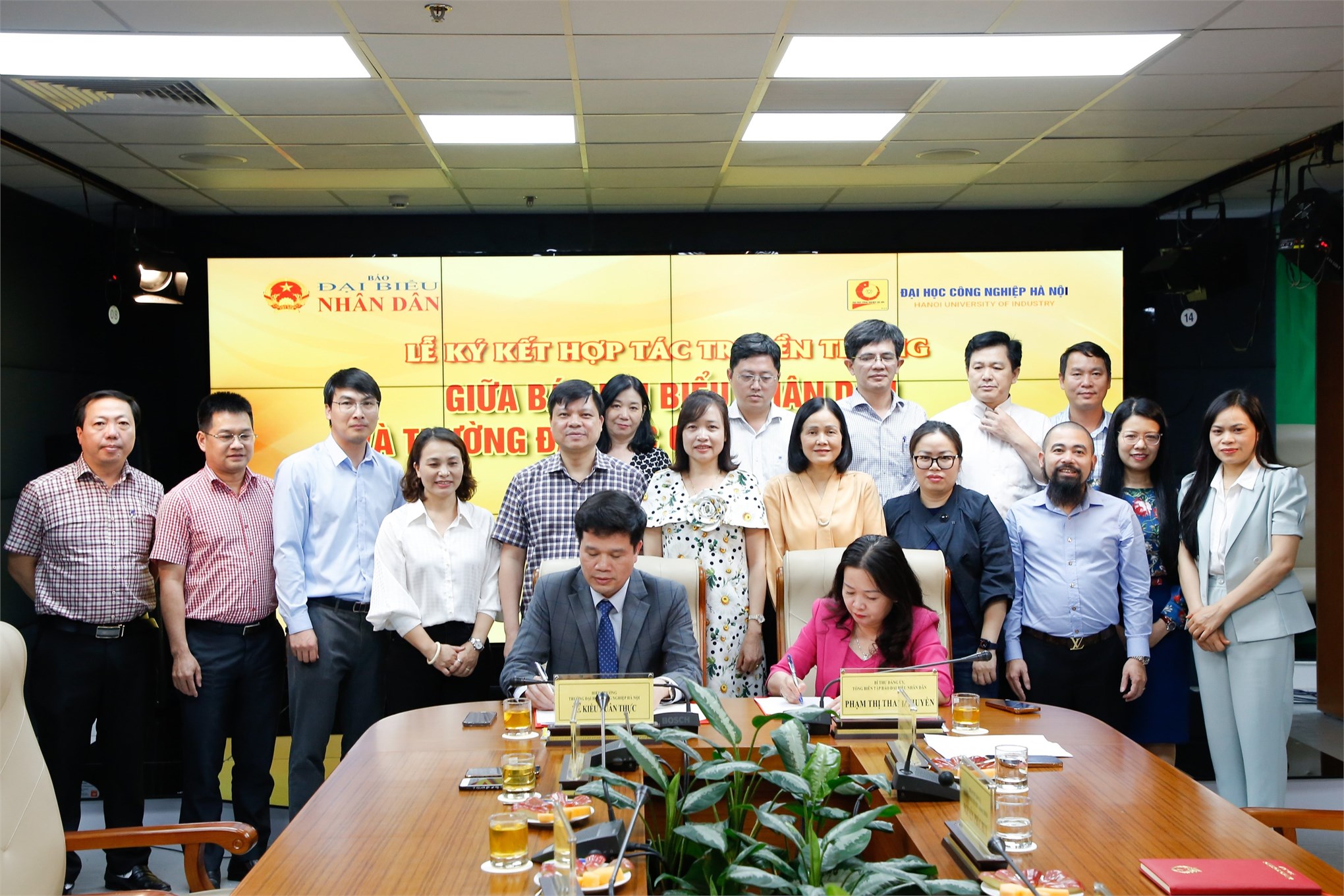 Tại lễ ký kết, thay mặt hai đơn vị, Tổng biên tập Phạm Thị Thanh Huyền và Hiệu trưởng Kiều Xuân Thực đã ký biên bản hợp tác truyền thông giữa Báo Đại biểu Nhân dân và Trường Đại học Công nghiệp Hà Nội.