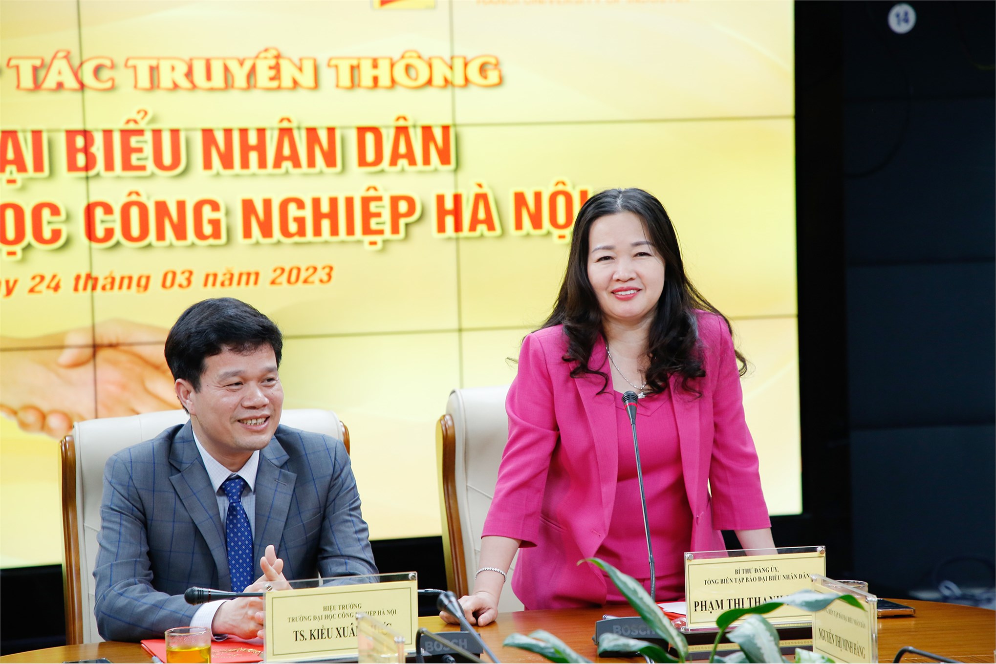 Phát biểu đáp lời, Tiến sĩ Kiều Xuân Thực, Hiệu trưởng Trường Đại học Công nghiệp Hà Nội bày tỏ sự ấn tượng với Báo Đại biểu Nhân dân về vị thế, uy tín và sức ảnh hưởng của báo. Đây cũng là lần đầu tiên lãnh đạo Trường Đại học Công nghiệp Hà Nội tới thăm và ký kết trực tiếp với một cơ quan báo chí.