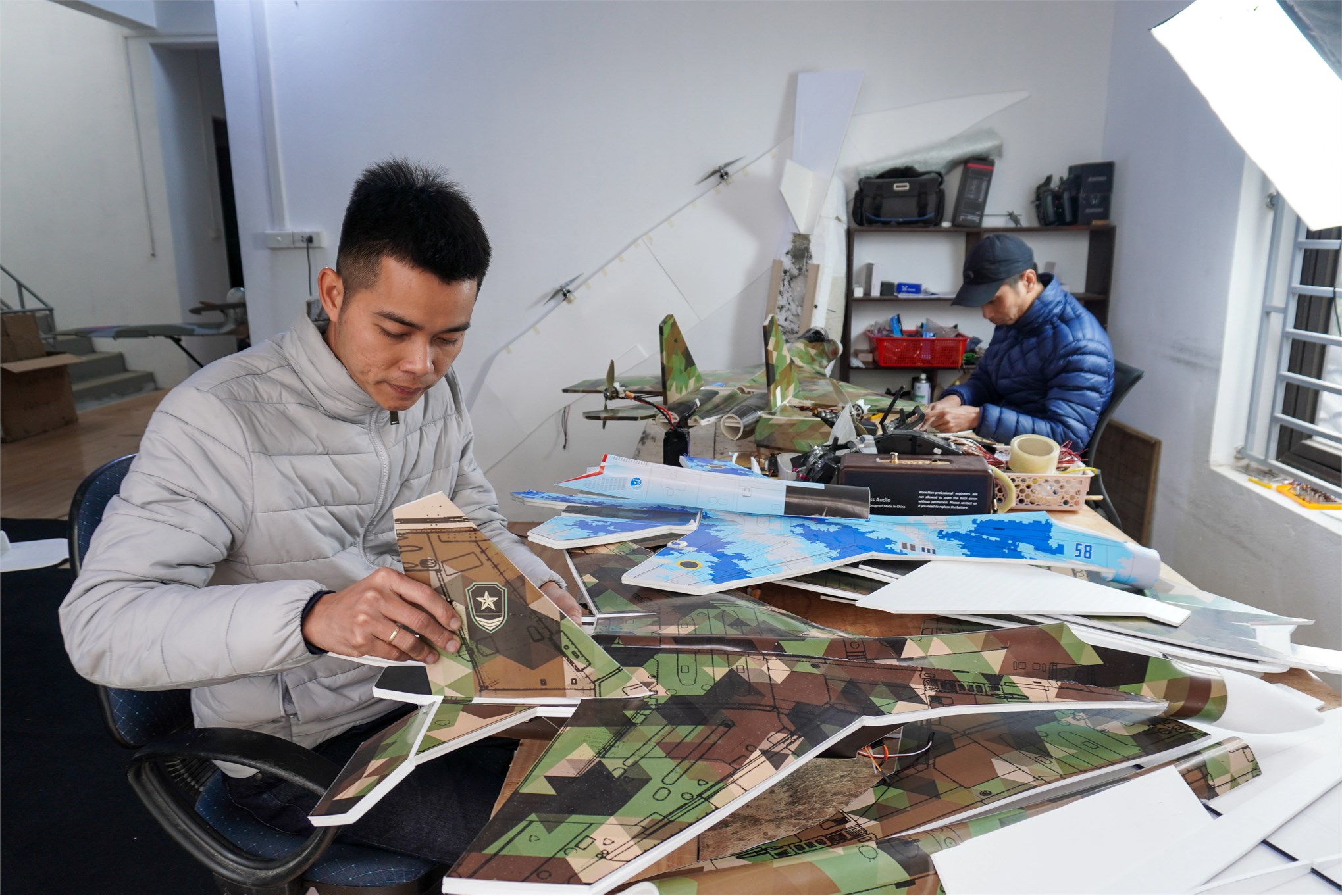 Chơi máy bay mô hình từ khi còn là sinh viên, năm 2016, anh Nam quyết định mở xưởng sản xuất ở khu đô thị Nam An Khánh (Hà Nội) để thỏa mãn đam mê và kiếm thêm thu nhập (Ảnh: Gia Đoàn).