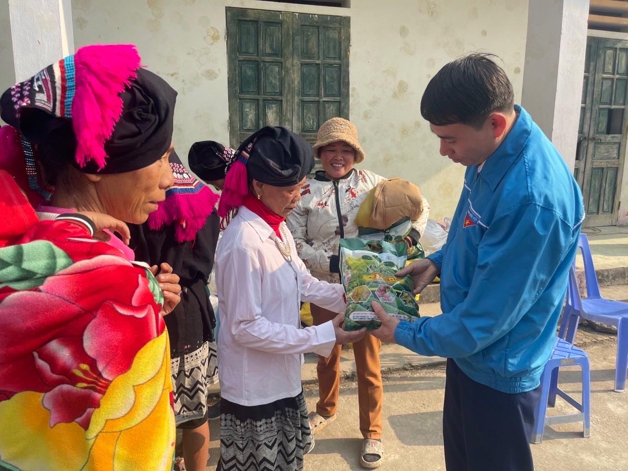 Anh Trần Xuân Thành, Bí thư ĐTN Công ty cùng ĐTN Công ty và ĐTN thị trấn Hùng Sơn tặng quà cho gia đình chiến sỹ đang công tác tại Hải đảo.