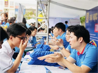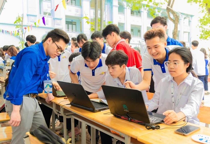 Sinh viên Đại học Công nghiệp Hà Nội trong một hoạt động dành cho học sinh THPT ở Hà Nội hồi tháng 4. (Ảnh: HaUI)