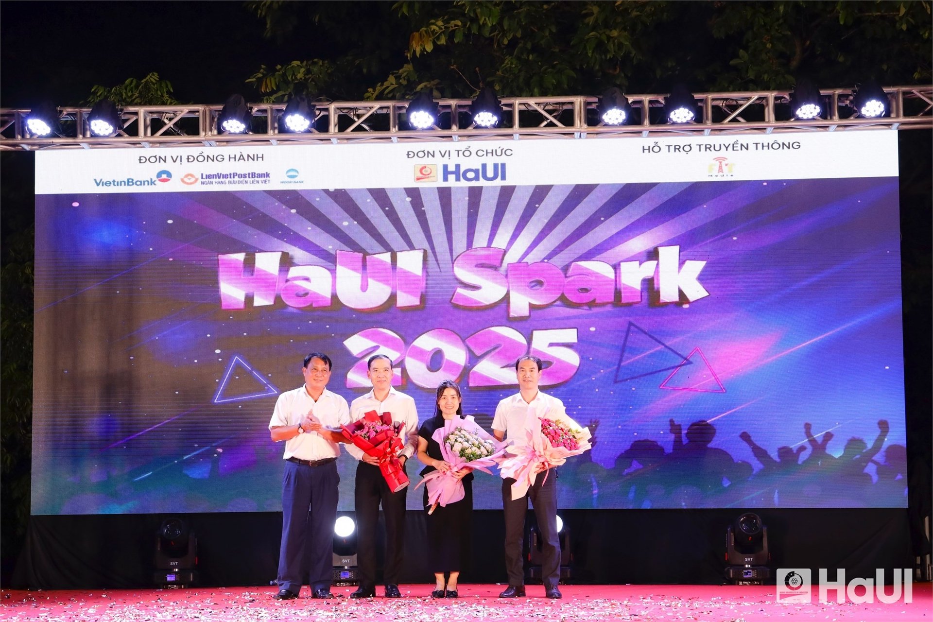 Tối cùng ngày, không khí chào tân tiếp tục bùng nổ với HaUI SPARK 2025 – đêm đại nhạc hội thắp sáng năm học mới bằng một bữa tiệc âm nhạc và ánh sáng rực rỡ với chuỗi mashup sôi động, vũ đạo bùng nổ, ballad cảm xúc và những phần trình diễn bất ngờ.