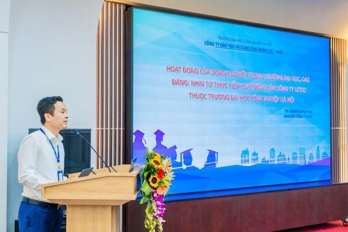 Thạc sĩ Nguyễn Quang Trung – Giám đốc Công ty LETCO (Trường Đại học Công nghiệp Hà Nội) chia sẻ trong tọa đàm.