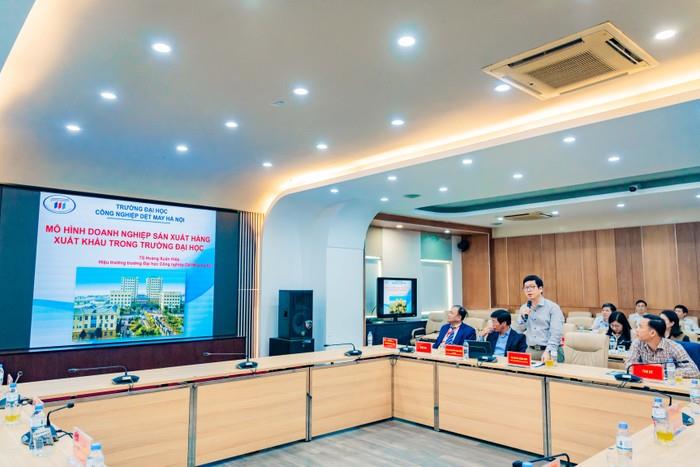 Cùng chia sẻ về mô hình doanh nghiệp sản xuất hàng xuất khẩu trong trường đại học, Tiến sĩ Hoàng Xuân Hiệp – Hiệu trưởng Trường Đại học Công nghiệp Dệt May Hà Nội cho biết những thuận lợi, khó khăn khi vận hành doanh nghiệp trong Trường Đại học Công nghiệp Dệt May Hà Nội (doanh nghiệp hoạt động trong trường từ năm 1992 đến nay, tương đối ổn định).