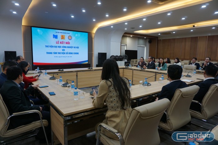 Trường Đại học Công nghiệp Hà Nội tổ chức Lễ kết nối Thư viện nhà trường với Trung tâm thư viện số dùng chung. (Ảnh: Phạm Minh).