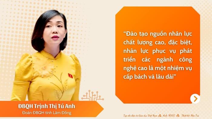 Đại biểu Quốc hội Trịnh Thị Tú Anh: Trong bối cảnh cách mạng công nghiệp lần thứ tư và hội nhập quốc tế sâu rộng, việc thu hút, đào tạo và phát triển nguồn nhân lực có trình độ cao, đặc biệt là cho các ngành công nghệ cao, là một yêu cầu cấp bách.