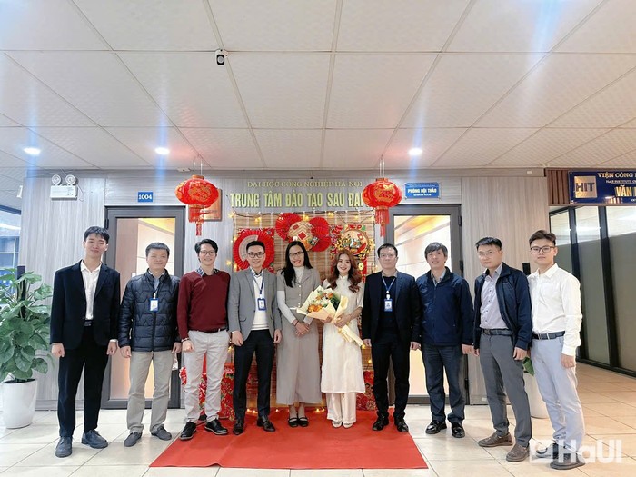 Niềm vui trong ngày bảo vệ thành công Đồ án tốt nghiệp của cựu học viên Trần Thị Nhất - ngành Thạc sĩ Cơ điện tử (Trường Đại học Công nghiệp Hà Nội). Ảnh: NTCC.