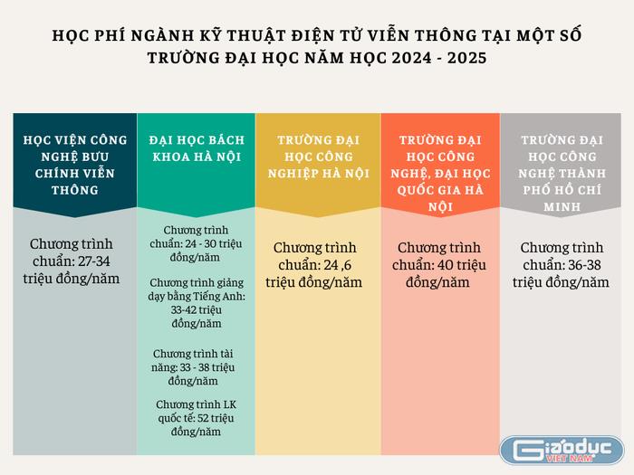 Để độc giả tiện theo dõi, phóng viên Tạp chí điện tử Giáo dục Việt Nam đã thống kê học phí của các cơ sở đào tạo đối với ngành Kỹ thuật Điện tử viễn thông trong năm học 2024 - 2025.