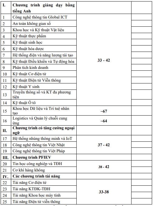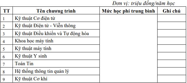 Chương trình tài năng có học phí là 33 - 38 triệu đồng/năm, áp dụng với 04 ngành bao gồm Tài năng Cơ điện tử; Tài năng Kỹ thuật Điều khiển và Tự động hóa; Tài năng Khoa học máy tính; Tài năng Điện tử viễn thông.
