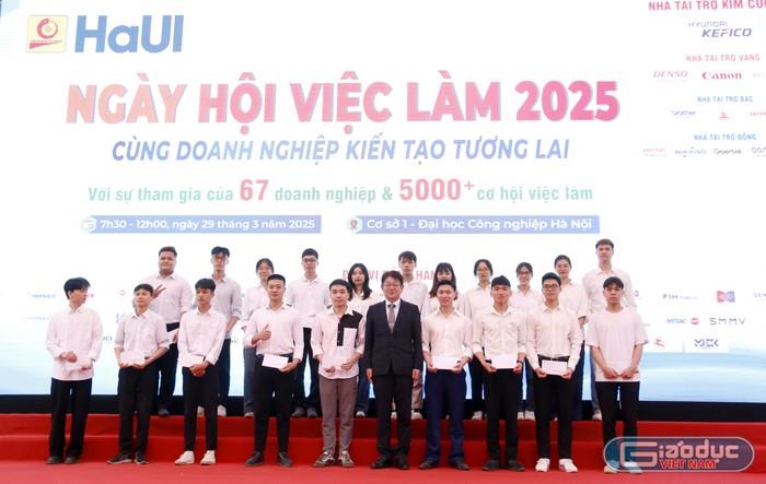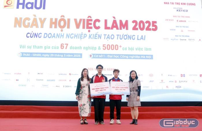 Trong khuôn khổ sự kiện, đại diện một số doanh nghiệp đã trao học bổng cho sinh viên có thành tích nổi bật của Trường Đại học Công nghiệp Hà Nội.