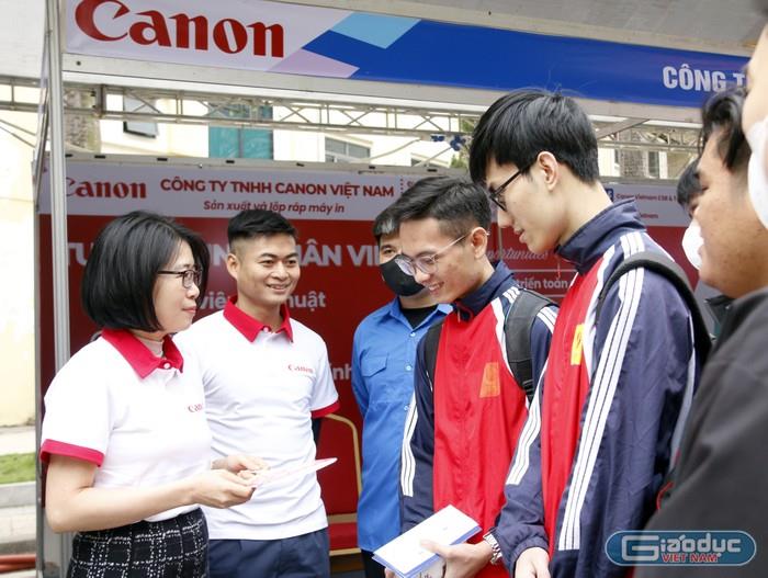 Bà Nguyễn Thị Nghĩa - Phó Trưởng phòng Tuyển dụng (Công ty TNHH Canon Việt Nam) cho biết: “Canon và Trường Đại học Công nghiệp Hà Nội có mối quan hệ hợp tác chiến lược, hai bên là đối tác thân thiết. Công ty mang đến Ngày hội việc làm của HaUI khoảng 100 vị trí việc làm với đa dạng lĩnh vực: kỹ sư điện, điện tử, cơ khí, công nghệ thông tin... Chúng tôi đã tiếp nhận gần 300 lượt đăng ký và số lượng thực tế phỏng vấn tại trường là gần 100 ứng viên.