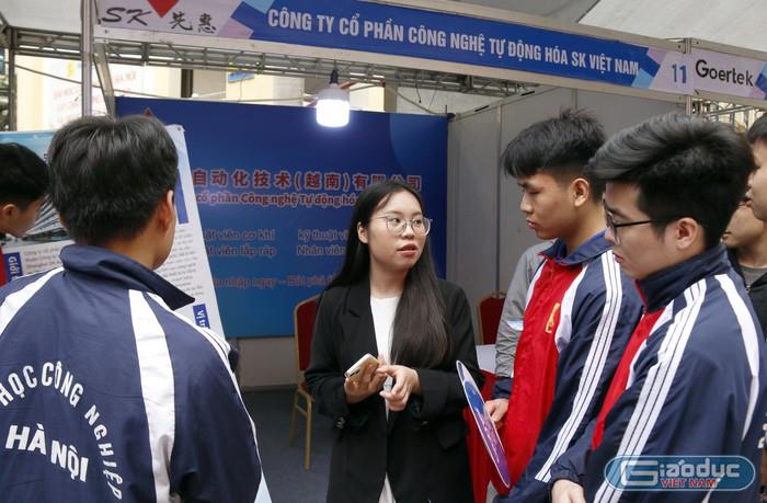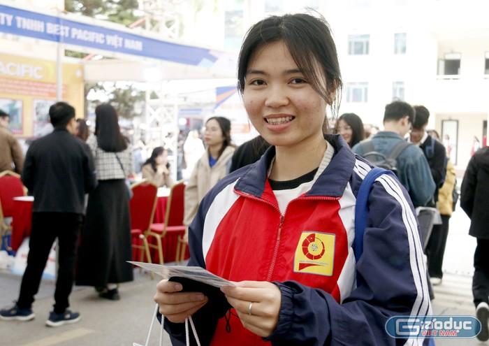 Nữ sinh Hoàng Thị Mai Chi - sinh viên lớp Công nghệ may 03 K16 (Trường Đại học Công nghiệp Hà Nội) cho biết: “Ngày hội việc làm năm nay có khá nhiều đơn vị tuyển dụng giới thiệu nhiều vị trí việc làm cho sinh viên. Hiện tại, em đang quan tâm thông tin tuyển dụng của Công ty TNHH Yi Da Việt Nam, với chế độ đãi ngộ khá tốt, vị trí việc làm đa dạng và phù hợp với chuyên ngành của em. Ngoài ra em cũng tham khảo thêm thông tin ở một số đơn vị khác để có thêm nhiều cơ hội việc làm hơn”.