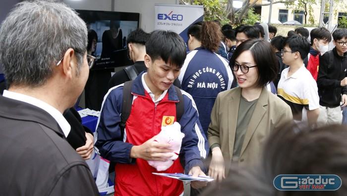 Đại diện Trường Đại học Công nghiệp Hà Nội tham quan các gian trưng bày và tuyển dụng của các doanh nghiệp.