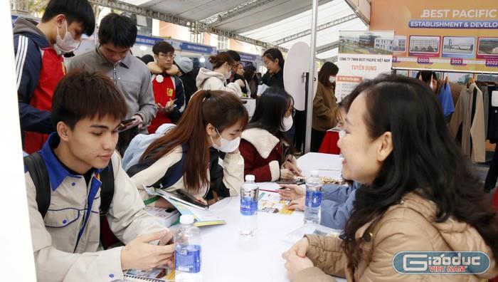 Hàng nghìn sinh viên Trường Đại học Công nghiệp Hà Nội sẵn sàng tìm hiểu và ứng tuyển vào các vị trí việc làm tại ngày hội.