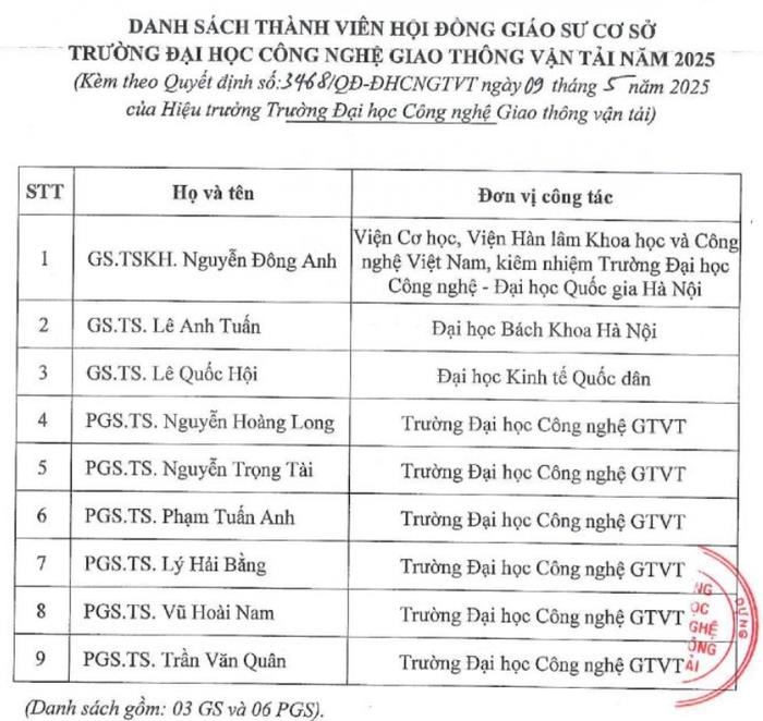 Đối chiếu với danh sách đề cử thành viên tham gia Hội đồng giáo sư cơ sở Trường Đại học Giao thông vận tải năm 2025, danh sách chính thức không có gì thay đổi.