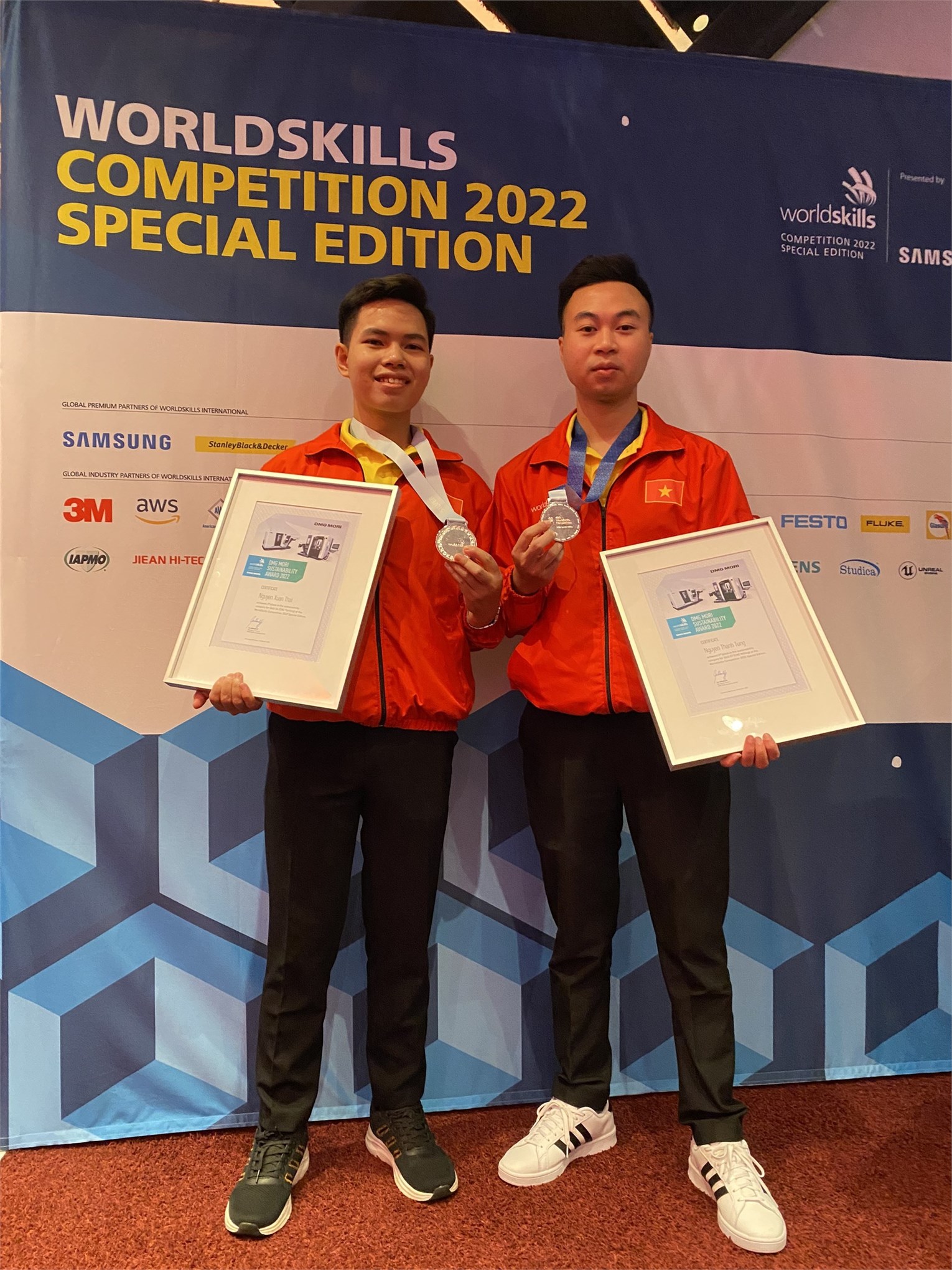 2 tấm Huy chương Bạc trong Kỳ thi Kỹ năng nghề thế giới năm 2022 (tổ chức tại Đức) được trao tặng cho Nguyễn Thanh Tùng và Nguyễn Xuân Thái. Đây là lần đầu tiên Việt Nam đạt thành tích cao nhất trong kỳ thi này sau 8 lần tham dự.