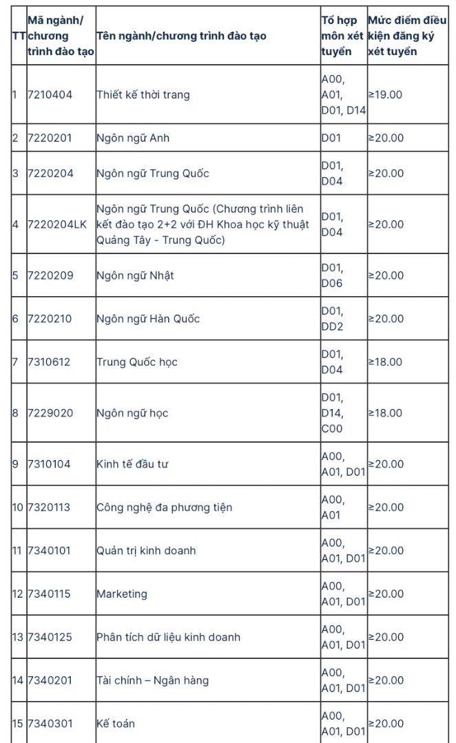 Trường Đại học Công nghiệp Hà Nội có mức điểm sàn dao động từ 18,00 đến 23,00 điểm, chi tiết như sau: