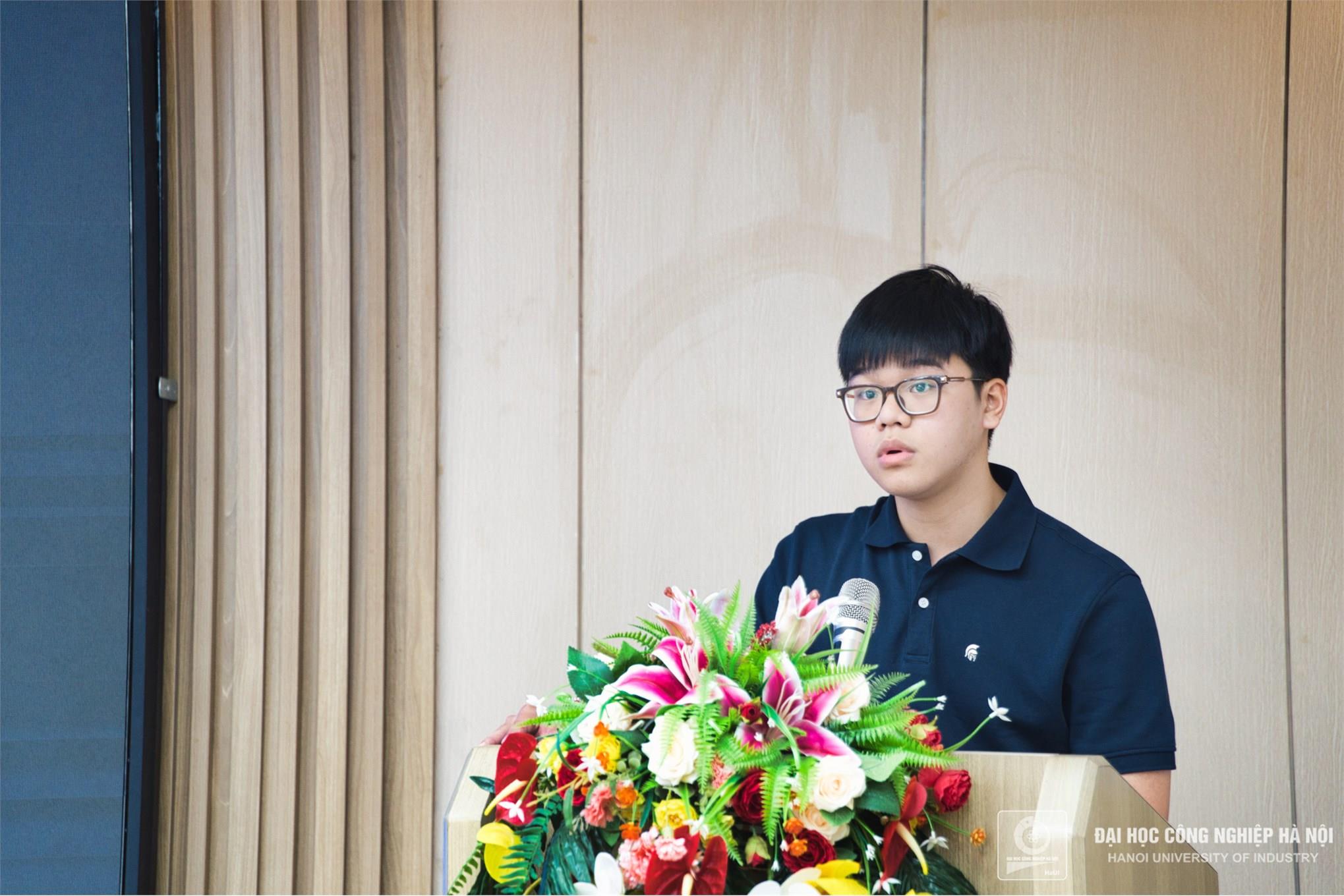Đại diện cho các thí sinh tham dự cuộc thi, sinh viên Trần Bá Anh - lớp Công nghệ kỹ thuật cơ khí 3 K17 gửi lời cảm ơn tới Ban Giám hiệu nhà trường, Ban tổ chức cuộc thi và các thầy, cô, đã tạo điều kiện cho sinh viên cơ hội để khám phá kiến thức trí tuệ trong lĩnh vực Cơ học.