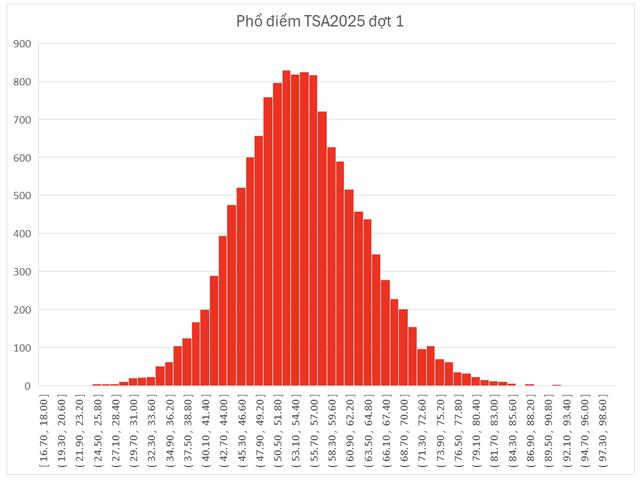 Phổ điểm kỳ thi Đánh giá tư duy đợt 1 năm 2025 vừa được công bố ngày 24/1.