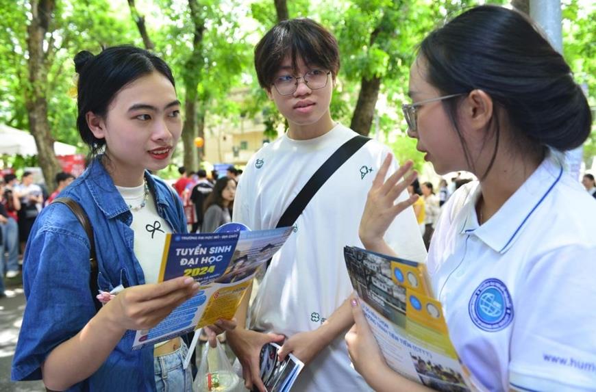 Thí sinh dự Ngày tư vấn xét tuyển đại học, cao đẳng 2024 diễn ra sáng 20-7, tại Hà Nội.