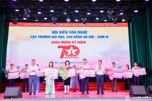 Đồng chí Phạm Văn Hải - Trưởng Ban Tuyên giáo, Đảng ủy Khối các trường đại học cao đẳng Hà Nội và đồng chí Kiều Xuân Thực - Phó Bí thư Đảng ủy, Hiệu trưởng Trường Đại học Công nghiệp Hà Nội, đại diện cho đơn vị đăng cai lên trao giải Nhì cho 02 trường: Trường Đại học Hà Nội và Trường Cao đẳng Y tế Hà Đông