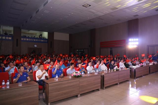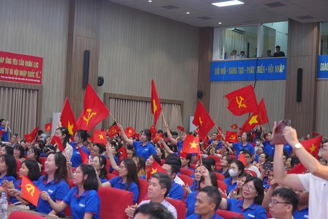 Đại biểu, viên chức, người lao động, học viên, sinh viên Trường Đại học Công nghiệp Hà Nội tham dự chương trình nghệ thuật "Tổ quốc tôi chưa đẹp thế bao giờ"