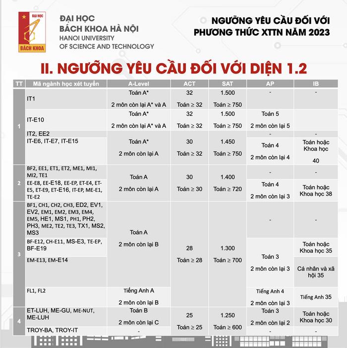 Phương thức 6: Xét tuyển dựa trên kết quả thi đánh giá tư duy do Đại học Bách khoa Hà Nội tổ chức năm 2023.