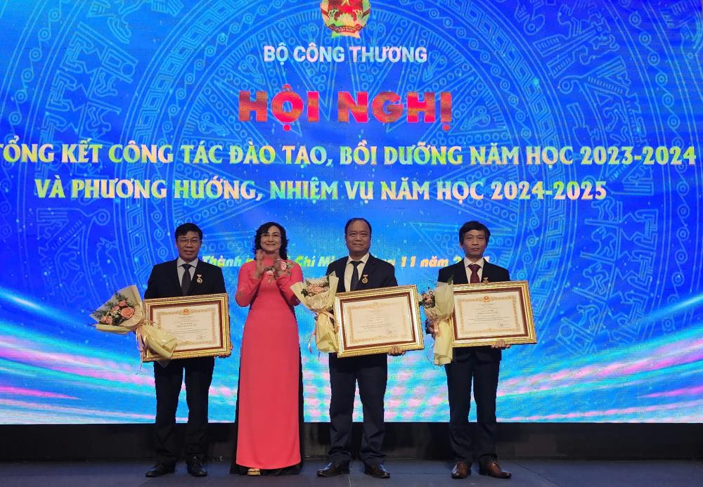 Thứ trưởng Phan Thị Thắng tặng thưởng Danh hiệu “Nhà giáo ưu tú” cho 3 cá nhân thuộc các Trường Đại học, Bộ Công Thương, gồm: PGS. TS. Nguyễn Xuân Hoàn, Bí thư Đảng ủy, Hiệu trưởng Trường Đại học Công Thương TP. Hồ Chí Minh; TS. Nguyễn Văn Thiện, Phó Hiệu trưởng, Trường Đại học Công nghiệp Hà Nội; và PGS.TS. Trịnh Trọng Chưởng, Phó Trưởng Khoa Điện, Trường Đại học Công nghiệp Hà Nội.