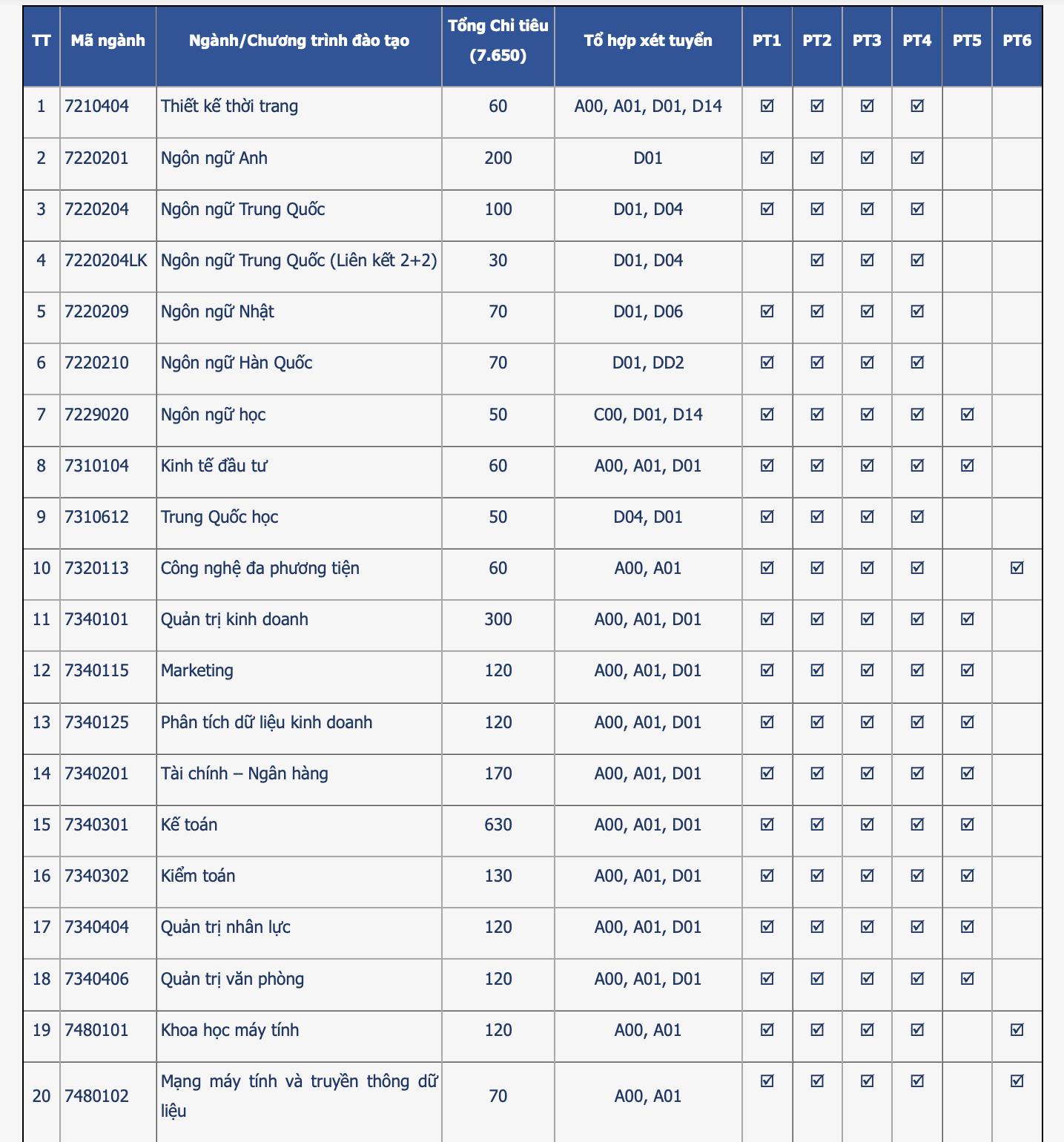 - Đối tượng ĐKXT: Thí sinh được công nhận tốt nghiệp THPT.