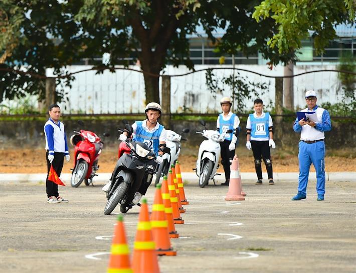 Các đội thi tham gia phần thi thực hành về lái xe mô tô an toàn
