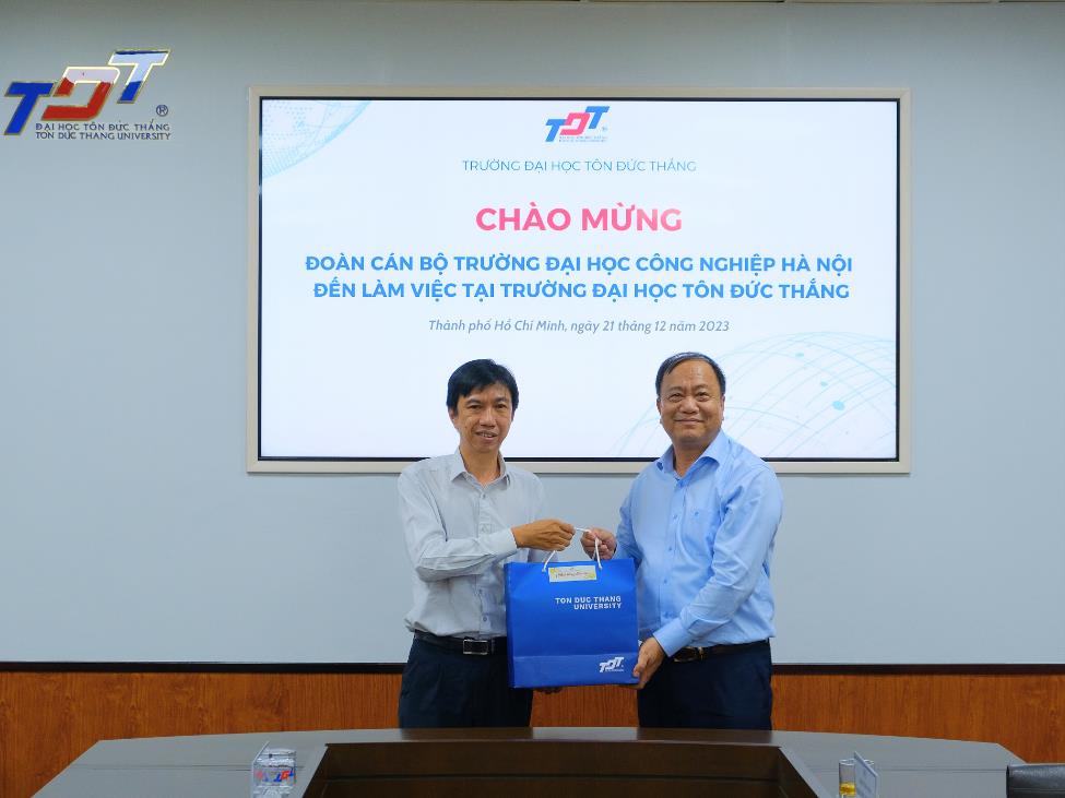 Ngày 21/12/2023, Đoàn Cán bộ, giảng viên, viên chức Trường Đại học Công nghiệp Hà Nội (HaUI) do TS. Nguyễn Văn Thiện - Phó Hiệu trưởng làm Trưởng đoàn cùng các thầy, cô Lãnh đạo các Phòng, Ban, Trung tâm, Thư viện của Trường Đại học Công nghiệp Hà Nội đã đến thăm và làm việc với Trường Đại học Tôn Đức Thắng (TDTU).