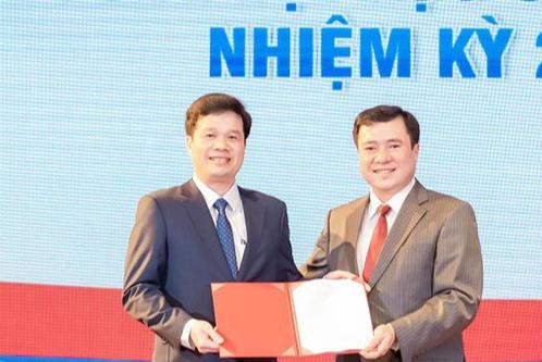 TS Kiều Xuân Thực (bên trái) nhận quyết định của Bộ trưởng Bộ Công thương công nhận Hiệu trưởng Trường ĐH Công nghiệp Hà Nội từ ông Nguyễn Sinh Nhật Tân, Thứ trưởng Bộ Công thương