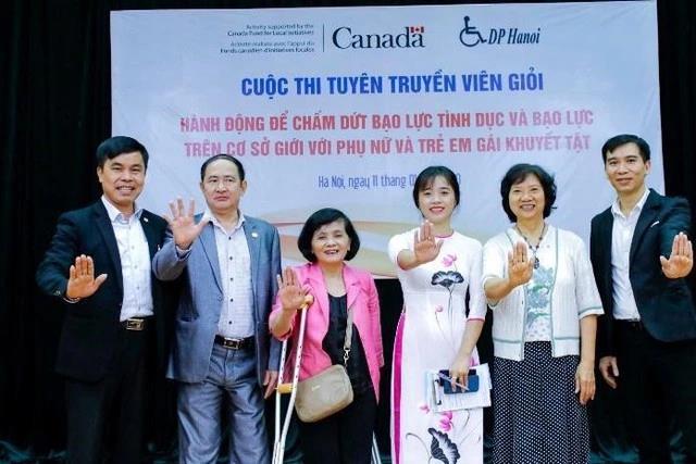 Vượt qua mặc cảm, nỗ lực vươn lên, chị Hằng (áo dài trắng) đang làm Phó ban thanh niên Hội người khuyết tật TP.Hà Nội - ẢNH: NVCC