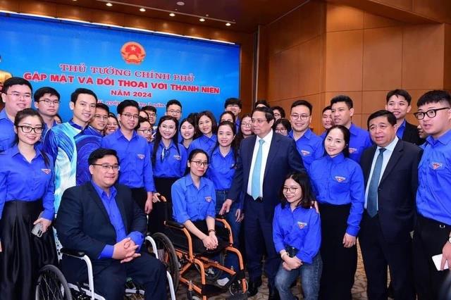Chị Hằng (đứng bên phải Thủ tướng Phạm Minh Chính), tham gia Chương trình đối thoại với Thủ tướng Chính phủ - ẢNH: NVCC