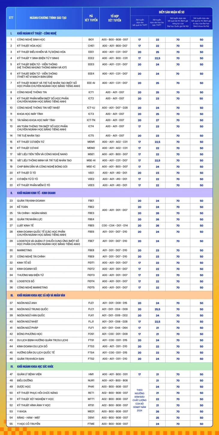Trường đại học Công nghiệp Hà Nội, Trường đại học Tài nguyên Hà Nội, Trường đại học Phenikaa, Trường đại học Điện lực... vừa công bố điểm sàn xét tuyển bằng điểm thi tốt nghiệp THPT năm 2024.
