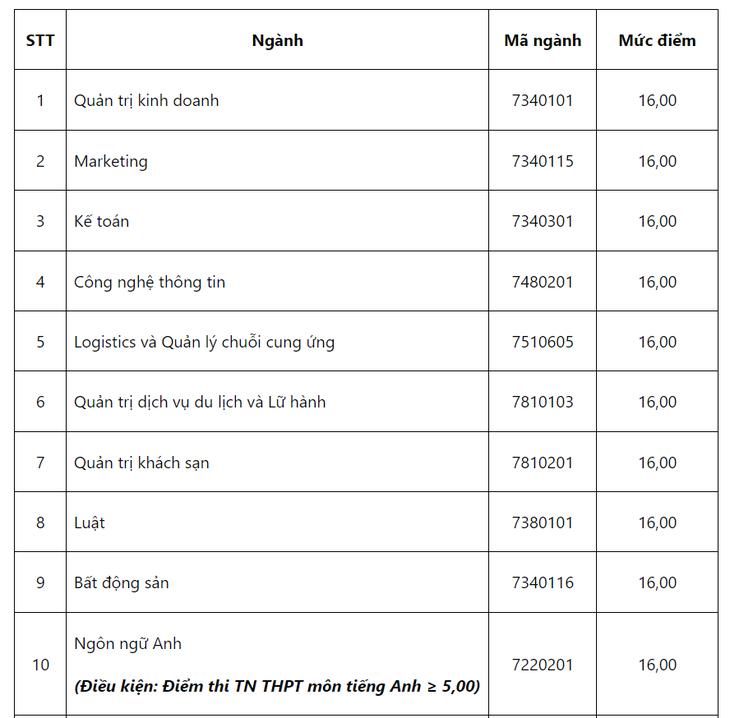 Hai ngành cao nhất cùng có điểm chuẩn 24,75 là marketing và logistics và quản lý chuỗi cung ứng.