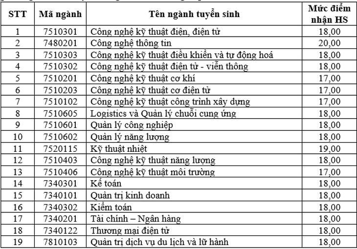 Trường đại học Điện lực cũng vừa công bố điểm sàn xét tuyển dao động từ 17 - 20 điểm, ngành công nghệ thông tin có điểm sàn nhận hồ sơ xét tuyển cao nhất.