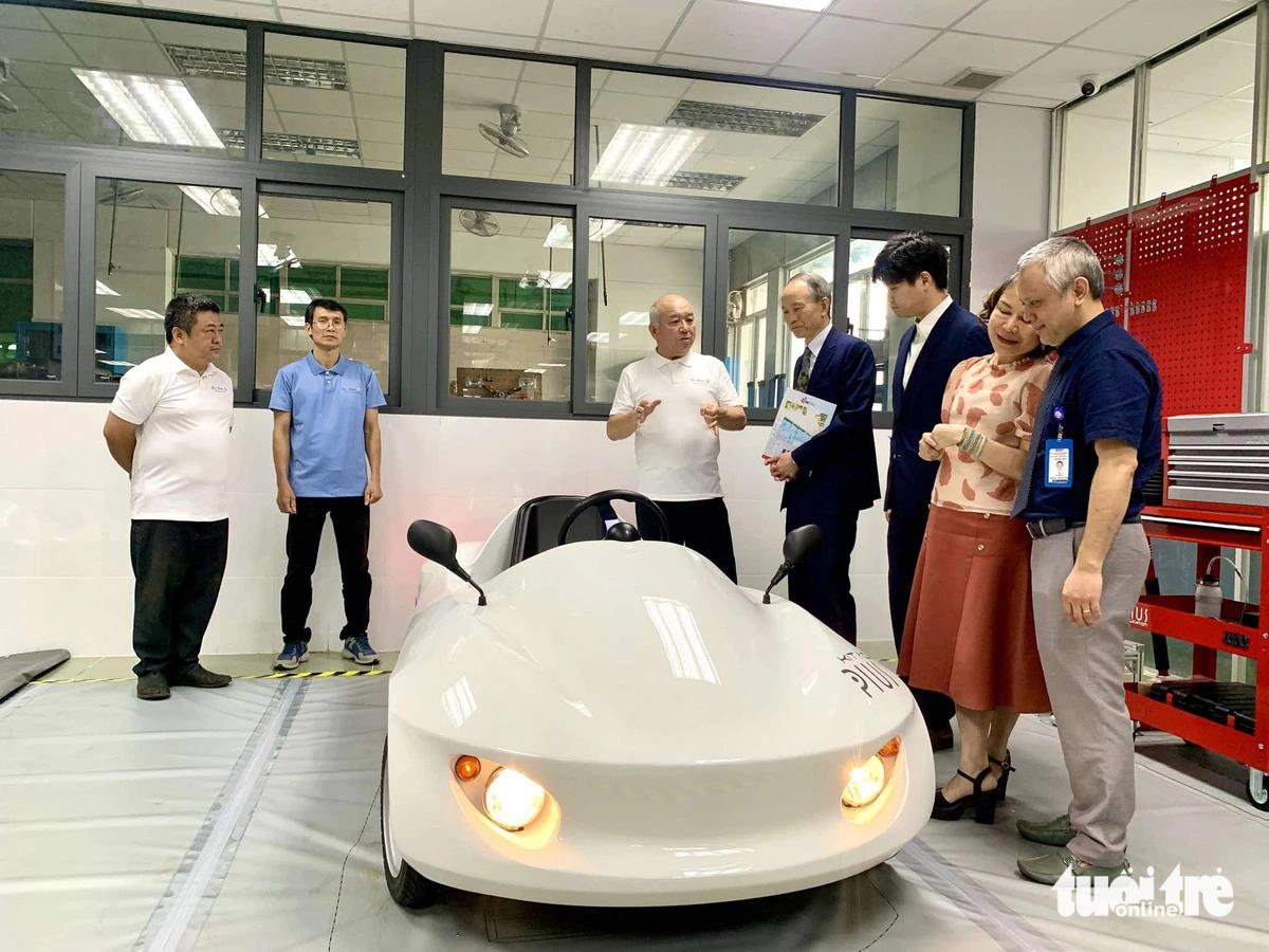 Trường đại học Công nghiệp TP.HCM tiếp nhận mẫu xe ô tô điện dùng cho đào tạo thực nghiệm PIUS, sáng 17-12 - Ảnh: TRẦN HUỲNH