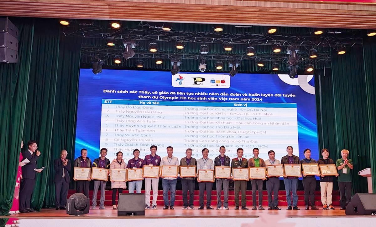 Ghi nhận những đóng góp cho phong trào Olympic Tin học, Hội Tin học Việt Nam đã trao tặng bằng khen cho các trưởng, phó đoàn cùng các huấn luyện viên. Trong đó, TS Huỳnh Bá Diệu - trưởng bộ môn hệ thống thông tin và mạng (CMU), khoa đào tạo quốc tế (IS) của Đại học Duy Tân đã được Hội Tin học Việt Nam trao tặng bằng khen vì đã có nhiều đóng góp xuất sắc trong công tác bồi dưỡng sinh viên đạt thành tích cao trong các kỳ thi Olympic Tin học sinh viên Việt Nam và Lập trình Sinh viên quốc tế ICPC.
